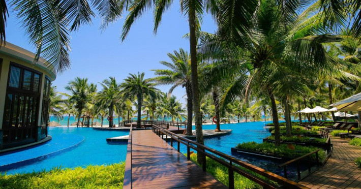 Situată langă o zonă privată de pe plaja Danang, această proprietate de 5 stele oferă mai multe opțiuni de luat masa, room service nonstop și camere de lux, cu balcon privat și Wi-Fi gratuit. Piscina infinită mare in aer liber oferă multe după-amieze relaxante.