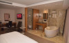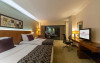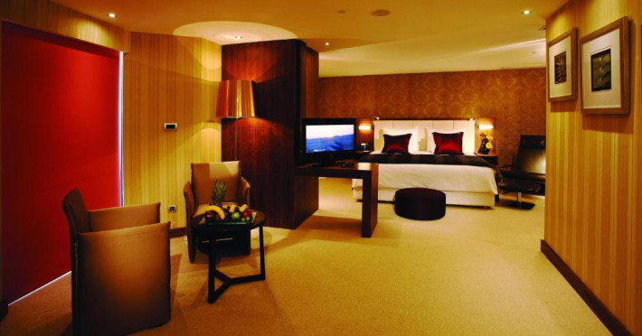 Camerele moderne combină confortul cu eleganța, fiind dotate cu aer condiționat, TV cu ecran plat, minibar și facilități pentru prepararea ceaiului și cafelei. Pentru relaxare, oaspeții au la dispoziție un centru spa cu piscină interioară, saună și baie turcească tradițională.