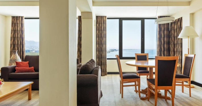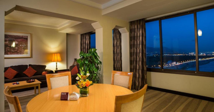 Situat pe varful unei stanci in centrul orașului, Crowne Plaza Muscat oferă vederi panoramice uimitoare la oraș și la mare. Relaxați-vă la piscina infinită cu două etaje sau la plaja privată naturală, inconjurată de apele strălucitoare, in timp ce soarele se scufundă in Marea Golfului.