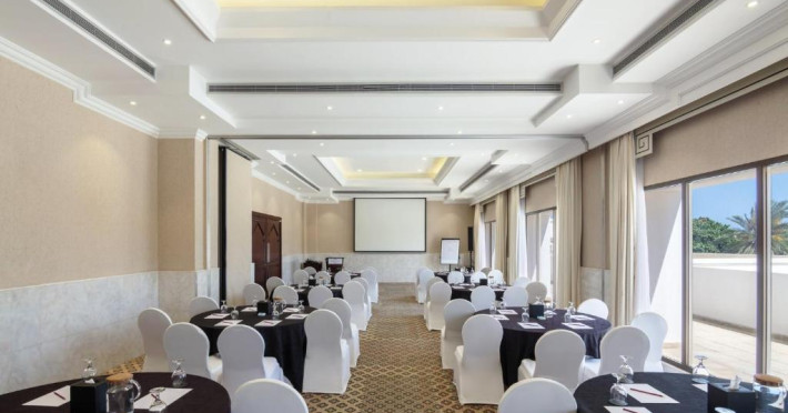Hotelul oferă mai multe opțiuni de luat masa premiate și se află la cațiva pași de celebra promenadă de pe malul mării, care se intinde spre atracțiile locale, inclusiv Parcul Natural Qurum și Opera Regală.
