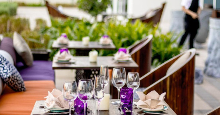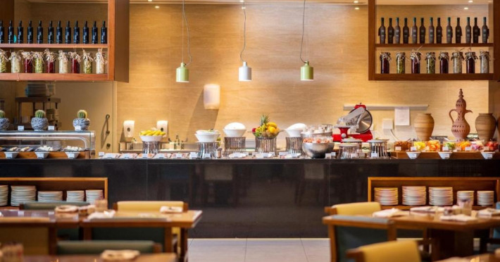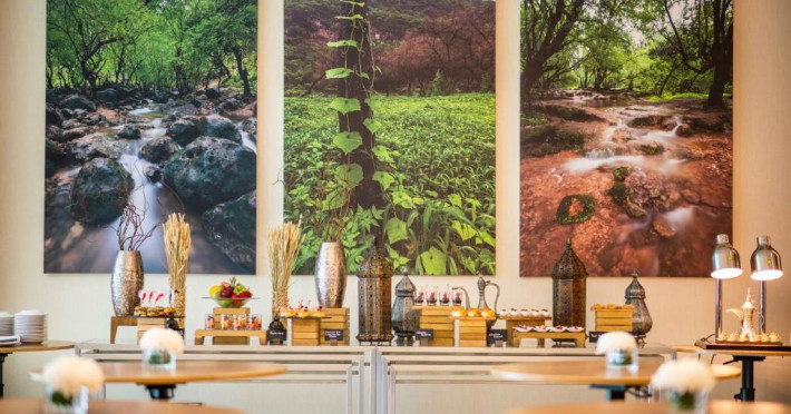 Hotelul are 5 restaurante și baruri, care servesc preparate din bucătăria locală și internațională. Mosaic oferă mese pe tot parcursul zilei, iar la Wadi Bar pot fi savurate mese ușoare, gustări și băuturi. Hotelul are, de asemenea, lounge-ul din hol Connexions, Charm Thai, un restaurant thailandez rafinat și Le Petit Belge, care oferă hamei și mancare belgiană.
