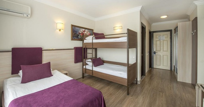 Hotelul are un numar total de 501 camere in doua cladiri principale si 9 blocuri "Apart Garden": camere standard (24mp, in cladirea principala si in bungalow-uri, un dormitor cu un pat matrimonial si un pat single, o baie, max 2+1pax), camere standard cu paturi supraetajate (24mp, in cladirea principala si in bungalow-uri, un dormitor cu pat matrimonial si 2 paturi suprapuse, baie, max 2+2pax), camere Junior suit terrace (24mp, in bungalow-uri la etajele superioare, un dormitor, o baie, terasa spatioasa, max.2pax), camere Family (38mp, cladirea principala, pat single + paturi suprapuse intr-un dormitor, un alt dormitor cu pat matrimonial, o baie, max.4+1pax). Toate camerele sunt dotate cu baie proprie cu dus, uscator de par, sistem de aer conditionat split, telefon direct, mini-bar (apa si bauturi racoritoare realimentat zilnic), seif, parchet laminat sau gresie, conexiune la internet Wi-Fi, TV prin satelit si canale de muzica , balcon.