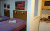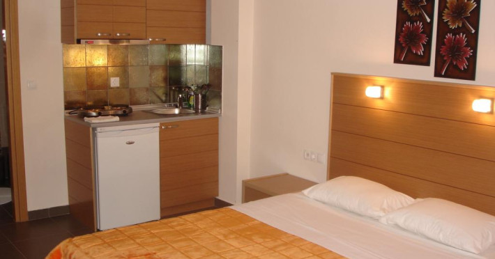 Camerele luminoase de la Crystal Aura sunt dotate cu aer condiționat și Tv cu canale prin satelit. Fiecare cameră dispune de cană-fierbător. În camere există baie cu cadă sau duș prevăzută cu foehn. Unele camere au balcon cu vedere la grădină sau la piscină. Oaspeții au acces gratuit la serviciul Wi-fi în camere. Curățenia in cameră se face zilnic. Fiecare unitate de cazare include o chicinetă utilată cu frigider, plită de gătit și ustensile de bucătărie. Proprietatea oferă camere pentru familie cu o suprafață mai mare și un număr mai mare de paturi față de cele standard.