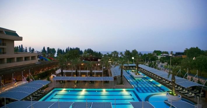 Acest complex all-inclusive este amplasat in gradini frumoase de 8000 de metri patrati si ofera o plaja privata cu pietris si un parc acvatic. Hotelul are si un centru spa, iar toate camerele au balcon. Camera este dotata cu aer conditionat, cheie electronica, TV prin satelit, minibar si seif pentru laptop. Unele camere au vedere la gradina si la Marea Mediterana, iar baia este dotata cu dus si uscator de par. Centrul spa bine echipat ofera sauna, baie turceasca si tratamente de intinerire corporale si de infrumusetare. In plus, piscina de 60 m² are cada cu hidromasaj, dusuri cu jet si sezlonguri. Statiunea ofera activitati recreative precum tenis, bowling si sporturi acvatice.