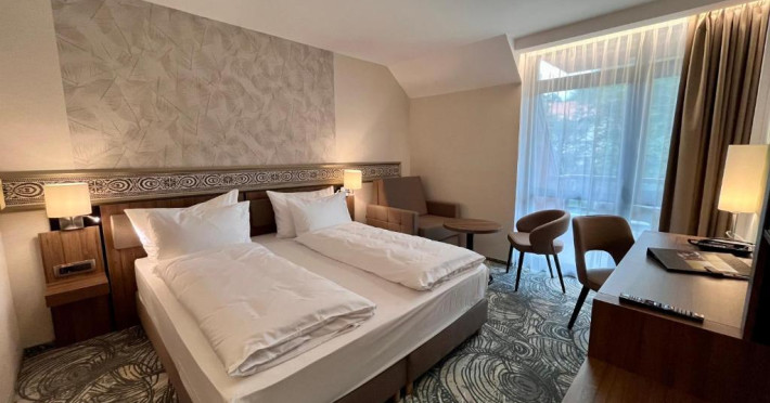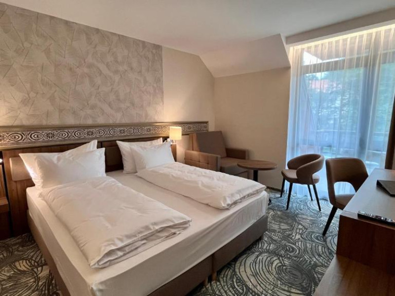 Hotelul este situat in centrul statiunii Sovata, la doar 650 de metri de lacul Ursu, are 104 camere si parcare proprie, iar constructia a fost inceputa in anul 2021. Hotel are un restaurant care imbina bucataria traditionala cu retetele internationale, 3 sali de conferinte, centru SPA si wellnes, servicii terapeutice, sala de fitness, respectiv un lobby bar si este locatia ideala pentru cei ce cauta relaxare intr-o locatie exclusivista, familii cu copii si cei ce doresc sa se regenereze, dar in acelasi timp poate gazdui conferinte profesionale sau de afaceri, sesiuni de pregatiri sau evenimente private. Oaspetii hotelului pot beneficia gratuit de serviciile strandului in aer liber si a centrului SPA care ofera mai multe tipuri de piscine si saune. Serviciile terapeutice vor sta la dispozitia oaspetilor la inceputul anului 2024 si sunt destinate celor ce cauta, pe langa regenerarea corpului, si revitalizare spirituala prin serviciile de prim rang ale hotelului nostru si peisajul pitoresc al bailor Sovata. Hotelul nostru va oferi servicii de electroterapie, magnetoterapie, fizioterapie, hidroterapie, dar si proceduri de inhalare, impachetari cu parafina, bai galvanice, masaj terapeutic si camera de sare.Datorita dinamicitatii domeniului disponibilitatea ofertelor se modifica de la un moment la altul. De aceea ofertele sunt valabile in limita locurilor disponibile. Agentia nu este responsabila pentru eventualele neconcordante care pot aparea intre informatiile privind tarifele si alte detalii din site si informatiile primite in agentie. In aceste cazuri vor avea prioritate, intotdeauna, informatiile primite in agentie.
