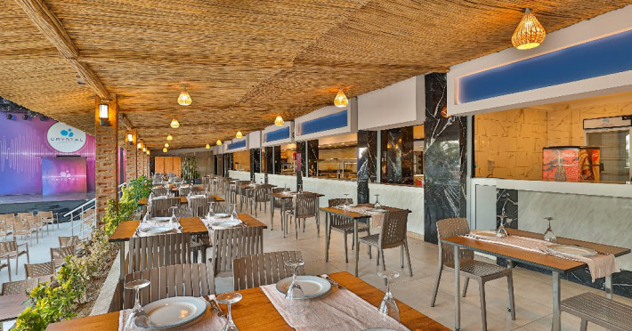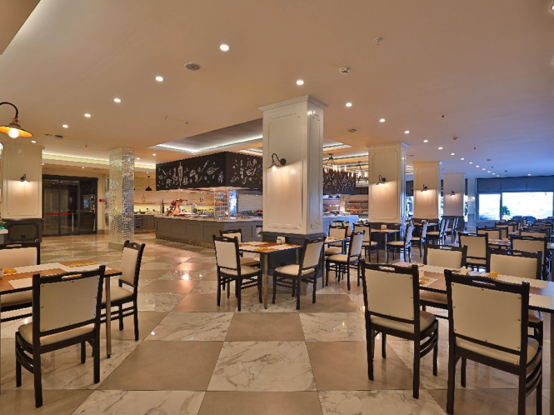 Facilitati hotel: Hotelul pune la dispozitia turistilor: restaurant principal, restaurant a la carte, snack bar, lobby bar, cafenea, beach bar, patiserie, inghetata, zona de plaja privata cu nisip fin, piscina interioara, piscina exterioara, piscina pentru copii, aquapark, miniclub pentru copii, mini cinema, loc de joaca pentru copii, spectacole pentru copii, disco, spectacole de seara, muzica live, spa si centru wellness cu sauna, masaj, baie turceasca, jaccuzi, bowling, fotbal, teren de tenis, teren de baschet, volei pe plaja, sala de fitness, tenis de masa, darts, mini golf, inchiriere auto si biciclete, coafor, centru comercial.