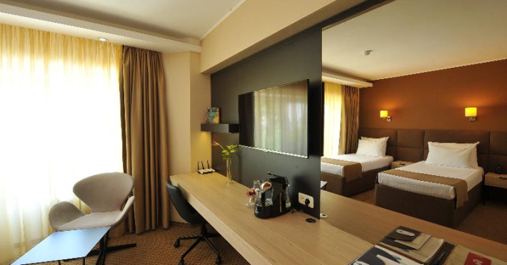 The hotel welcomes guests in a 5-storey building with a lift and 74 non-smoking rooms. The friendly staff at the reception desk are happy to answer any questions. Amenities include a cloakroom, baggage storage service, safe and currency exchange service. Wireless internet access is provided in public areas. There are a number of shops as well. Additional facilities include a newspaper stand. Guests arriving by car can park their vehicles in the garage or in the car park. Other services include room service (for a fee), a laundry service and a hotel shuttle bus. A business centre with fax machine, projector and photocopier is available.Datorita dinamicitatii domeniului disponibilitatea ofertelor se modifica de la un moment la altul. De aceea ofertele sunt valabile in limita locurilor disponibile. Agentia nu este responsabila pentru eventualele neconcordante care pot aparea intre informatiile privind tarifele si alte detalii din site si informatiile primite in agentie. In aceste cazuri vor avea prioritate, intotdeauna, informatiile primite in agentie.