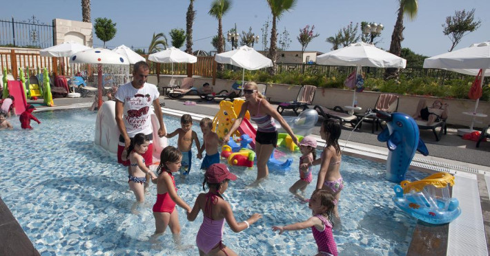 În grădina de la Crystal Palace Luxury Resort & Spa există un loc de joacă pentru copii special amenajat.
