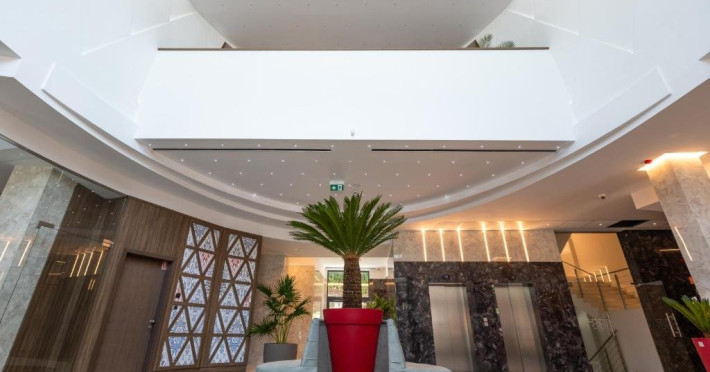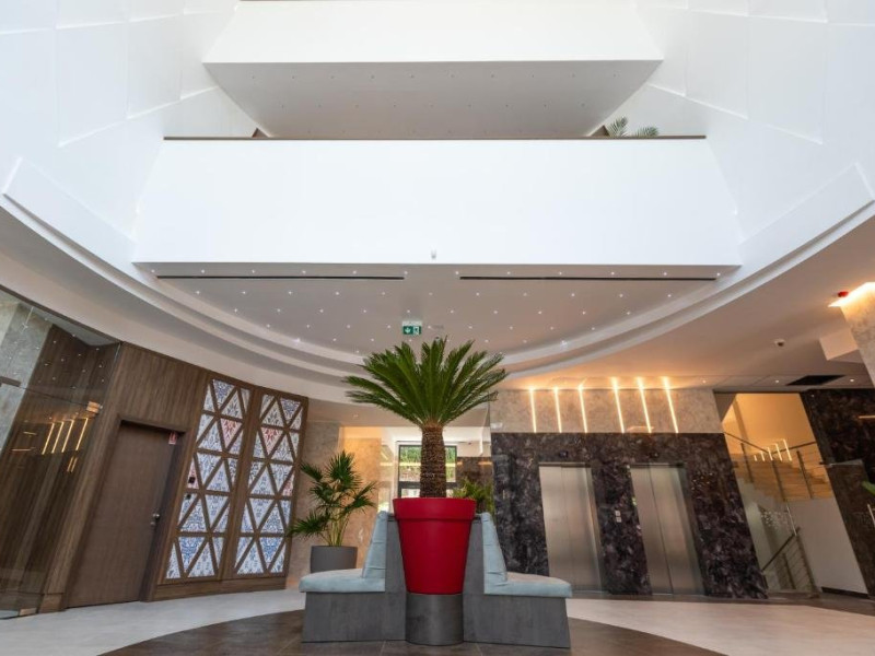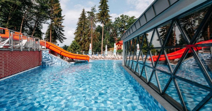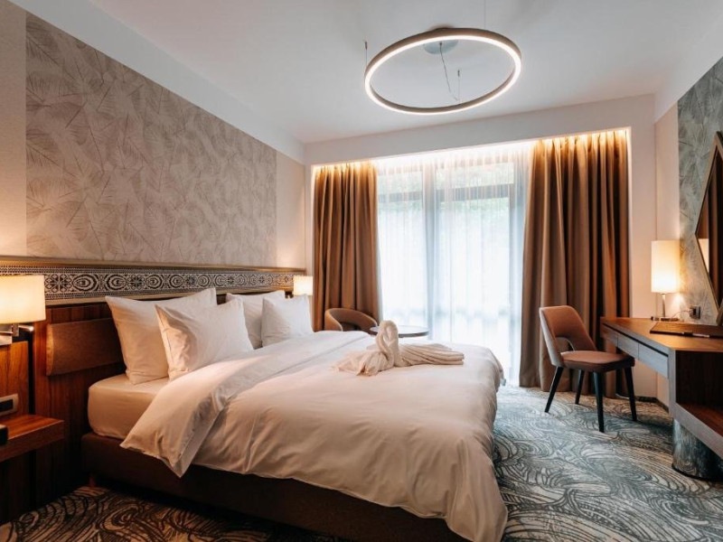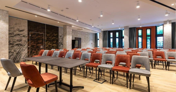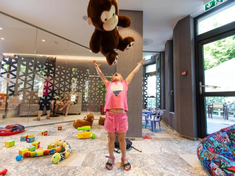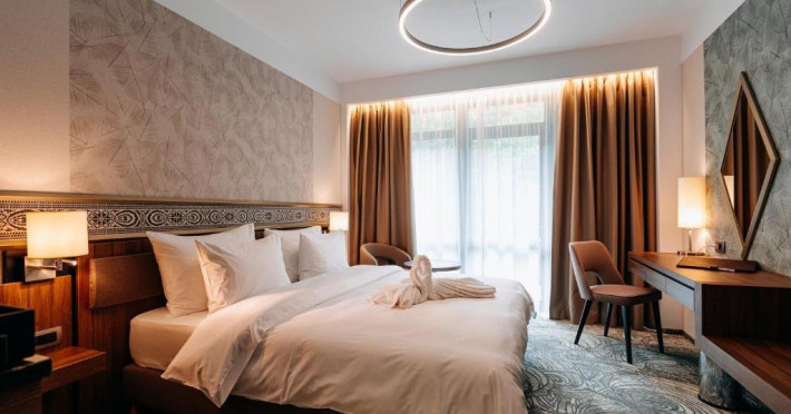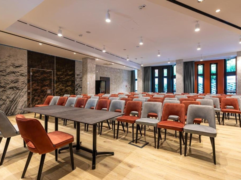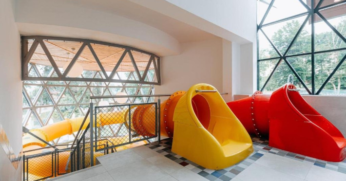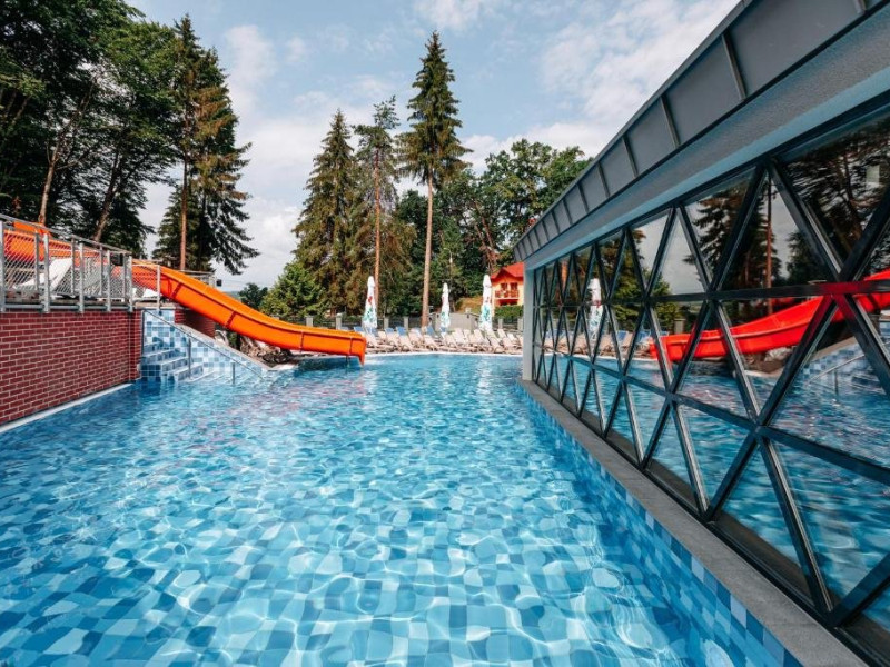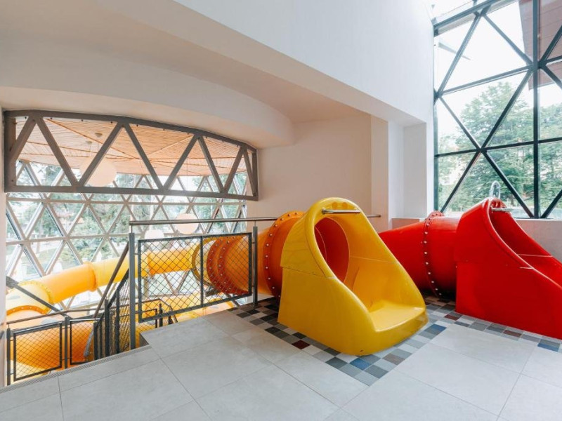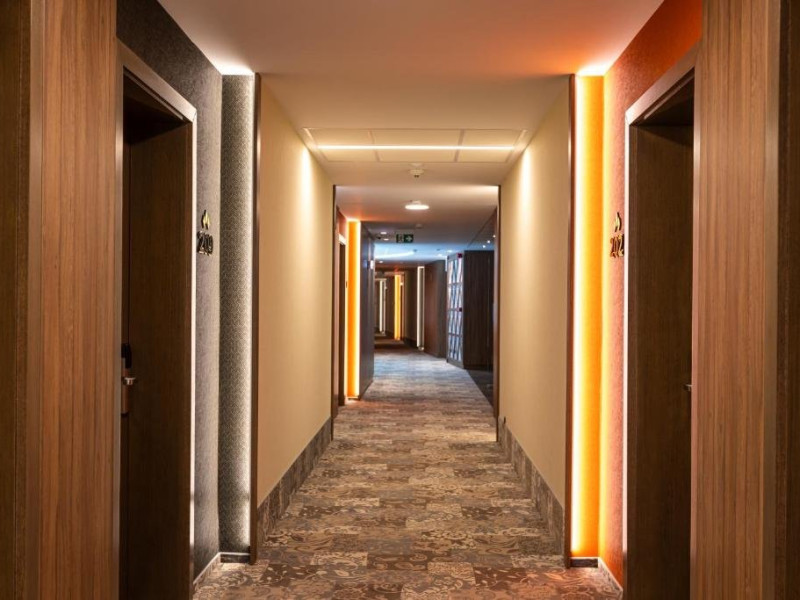 Zona de wellness a hotelului este amenajata la subsol, oferind o varietate de piscine, doua tobogane cu apa, diferite tipuri de saune, o unitate de servicii terapeutice cu asistenta medicala, servicii de masaj si un bar cu gustari si bauturi. Restaurantul, barul, sala de conferinte, sala de sport, zona pentru copii si camera de sare sunt, de asemenea, gratuite pentru oaspeti. Daca doriti sa petreceti ceva timp explorand imprejurimile sau sa participati la o gama larga de activitati de agrement, personalul nostru va fi mai mult decat bucuros sa va ajute sa gasiti cele mai bune atractii din zona. Centrul de conferinte al hotelului este complet echipat si poate gazdui pana la 240 de participanti. Cladirea in sine este conceputa pentru a fi sustenabila pentru activitati prin reducerea poluarii fonice si vizuale.