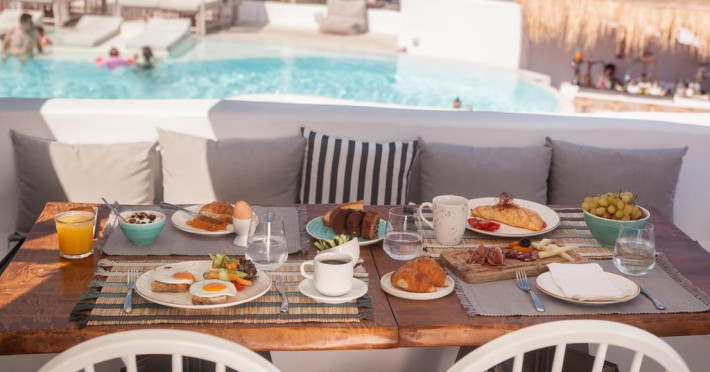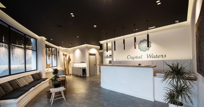 La Crystal Waters oaspeții au la dispoziție 2 restaurante unde pot savura mâncăruri delicioase à la carte. Bucătăria mediteraneană de la Crystal Waters propune preparate delicioase care satisfac gusturi diverse. Masa poate fi servită atât în interior, cît si în aer liber, pe terasă, în funcție de vreme. 2 baruri, dintre care unul la piscină, sunt disponibile cu o ofertă variată de băuturi răcoritoare și alcoolice.
