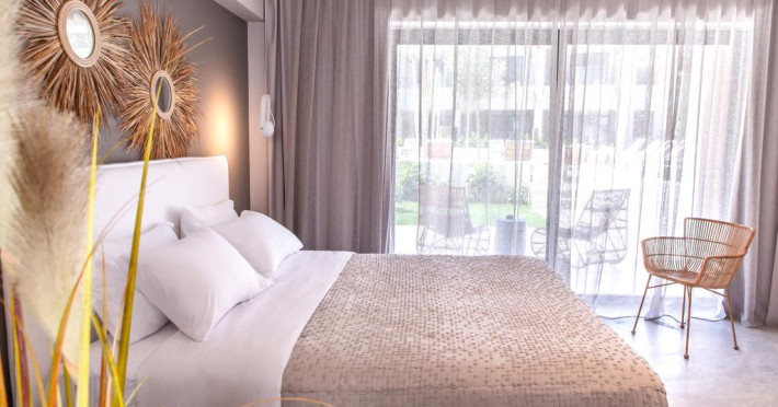 Sunt disponibile 147 camere. În camere există baie cu cadă sau duș ce are în dotare foehn și articole de toaletă gratuite. Unele camere au balcon cu vedere la mare sau la piscină. Fiecare cameră dispune de minibar și cană-fierbător. Oaspeții pot solicita serviciul de room service pentru a servi masa sau diverse băuturi. Camerele de la Crystal Waters sunt dotate cu aer condiționat, Tv cu canale prin satelit și seif. Oaspeții au acces gratuit la serviciul Wi-fi în camere. Curățenia in cameră se face zilnic. Toate camerele spațioase de la Crystal Waters au zonă de relaxare. De asemenea, este disponibilă o zonă de luat masa. Proprietatea oferă camere pentru familie cu o suprafață mai mare și un număr mai mare de paturi față de cele standard. Se pot rezerva de asemenea camere pentru nefumători.