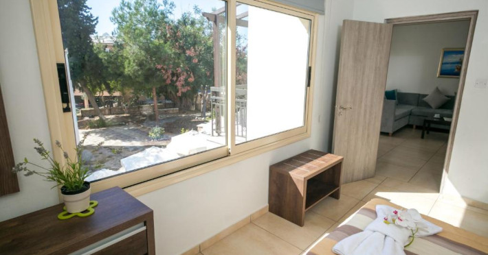 La mai puțin de 300 m se găsesc magazine, baruri și restaurante. Portul Paphos și plaja se află la mai putin de 15 minute de mers pe jos. Autobuzul către golful Coralilor are stație aproape de proprietate. Aeroportul Paphos este situat la 16 km.