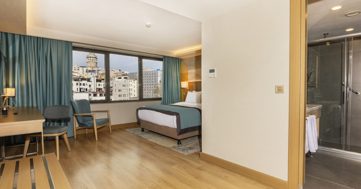 Near Galata Tower. A stay at Csk The Halich Port Istanbul places you in the heart of Istanbul, within a 10-minute walk of Galata Tower and Bosphorus. This hotel is 0.4 mi (0.7 km) from Istiklal Avenue and 1.5 mi (2.4 km) from Taksim Square. Make yourself at home in one of the 63 air-conditioned rooms featuring minibars and Smart televisions. Your bed comes with down comforters and premium bedding. Complimentary wireless internet access keeps you connected, and satellite programming is available for your entertainment. Private bathrooms with showers feature rainfall showerheads and designer toiletries. Enjoy a satisfying meal at Yuca İstanbul serving guests of Csk The Halich Port Istanbul. Wrap up your day with a drink at the bar/lounge. Buffet breakfasts are available daily from 7:30 AM to 10:30 AM for a fee. Make use of convenient amenities such as complimentary wireless internet access, concierge services, and a television in a common area.Datorita dinamicitatii domeniului disponibilitatea ofertelor se modifica de la un moment la altul. De aceea ofertele sunt valabile in limita locurilor disponibile. Agentia nu este responsabila pentru eventualele neconcordante care pot aparea intre informatiile privind tarifele si alte detalii din site si informatiile primite in agentie. In aceste cazuri vor avea prioritate, intotdeauna, informatiile primite in agentie.
