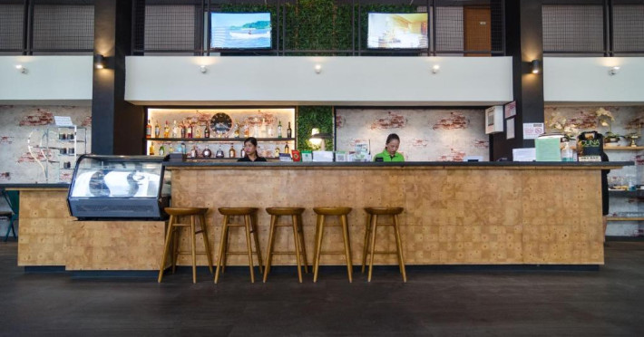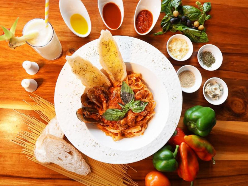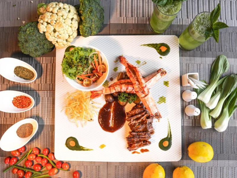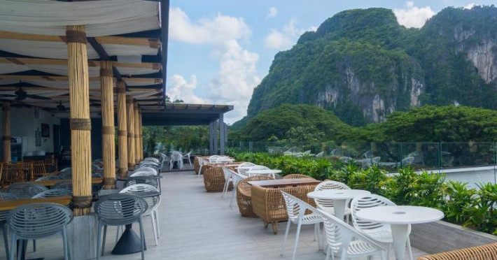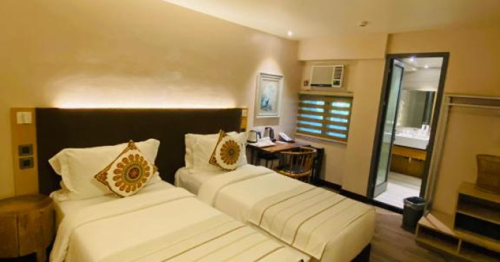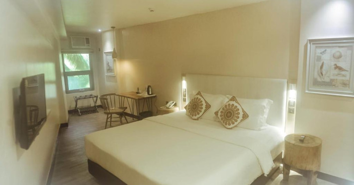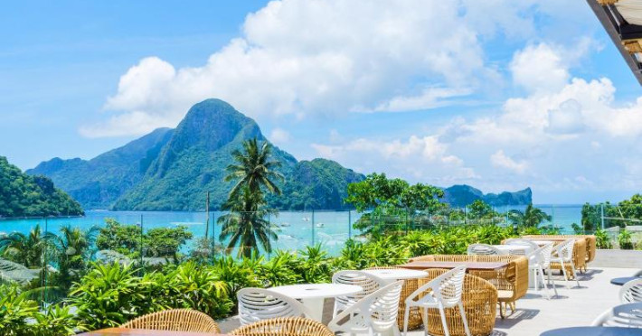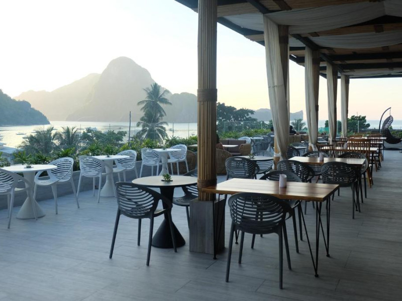 Restaurantul hotelului servește o combinație rafinată de preparate filipineze și internaționale, cu accent pe fructe de mare proaspete și ingrediente locale. Terasa de pe acoperiș este locul ideal pentru a admira apusul spectaculos peste Marea Chinei de Sud, savurand un cocktail tropical.