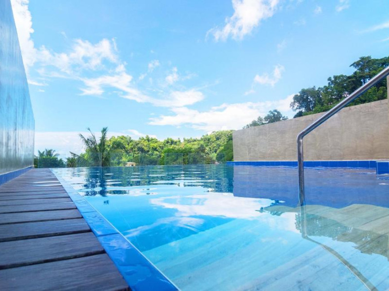 Camerele elegante sunt dotate cu aer condiționat, WiFi gratuit și balcoane private care oferă priveliști spectaculoase spre marea cristalină sau spre peisajul tropical inconjurător. Hotelul dispune de o piscină infinity cu vedere panoramică, perfectă pentru momentele de relaxare după o zi de explorare.