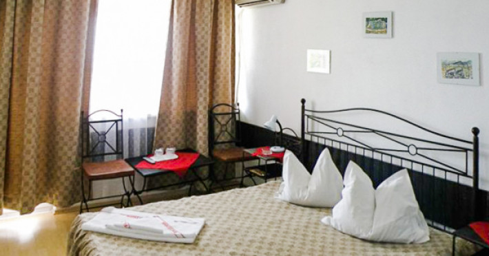 Camerele hotelului dispun de: TV, frigider, baie cu dus, internet, pardoseala din gresie, mobilier nou, tamplarie PVC cu geam termopan, pat matrimonial, plasa insecte. O parte din camere au balcon.