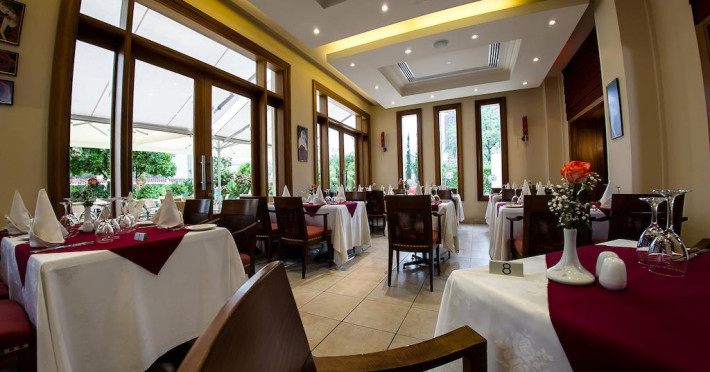 La Curium Palace Hotel oaspeții au la dispoziție un restaurant care servește mâncare à la carte. Preparate din bucătăria internațională așteaptă să fie degustate în fiecare zi la micul dejun, prânz și cină. Masa poate fi servită atât în interior, cît si în aer liber, pe terasă, în funcție de vreme. Oaspeţii pot avea diverse băuturi răcoritoare sau alcoolice la bar. În cadrul proprietății există și un snack bar care servește băuturi și gustări.