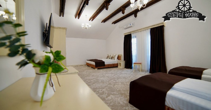 Camera familiala are o dimensiune de 4 mp, dispunand de un pat matrimonial si doua paturi de o persoana. Aici se pot caza maxim 4 adulti si un copil 0-3 ani.