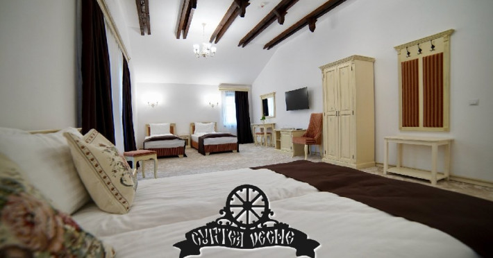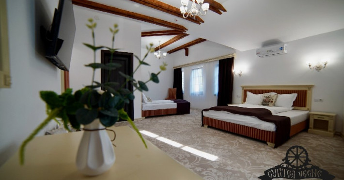 Camera tripla dispune de un pat matrimonial si un pat de o persoana, avand o dimensiune totala de 35 mp.