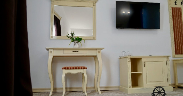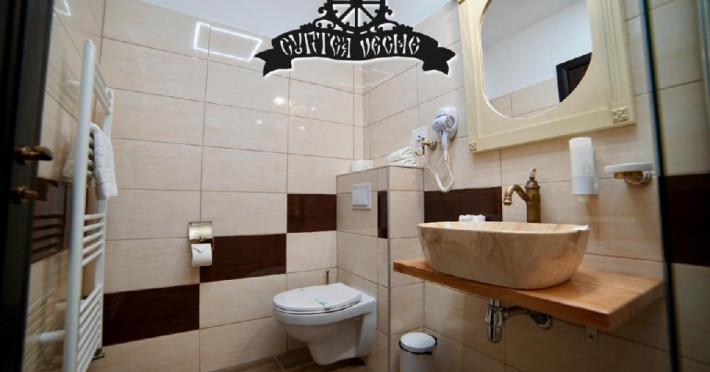 Fiecare camera este dotata cu baie proprie (cabina de dus, WC, consumabile, uscator de par), TV cu ecran plat, papuci de casa, WiFi gratuit, incalzire, aer conditionat ( in 13 din cele 22 de camere).
