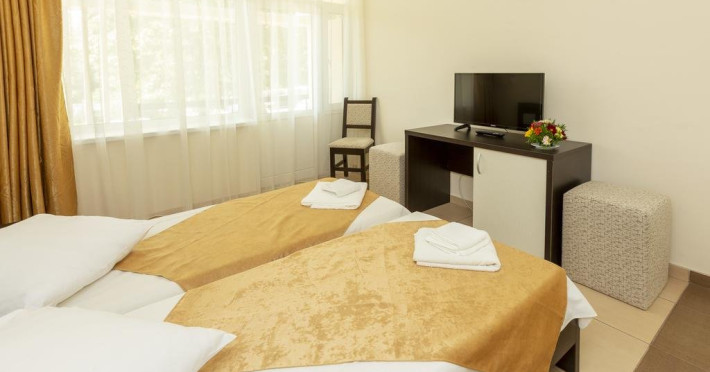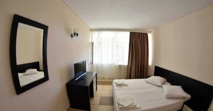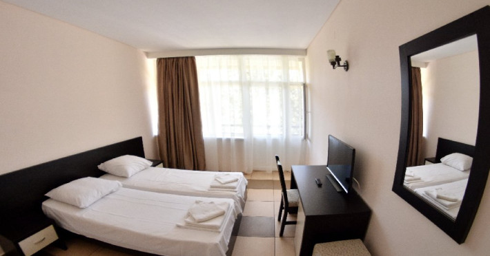 Camerele duble sunt prevazute cu: paturi twin, baie proprie cu dus, internet, TV, minifrigider si aer conditionat.