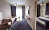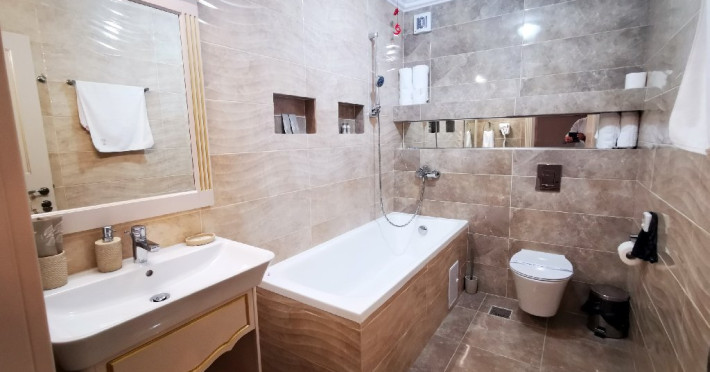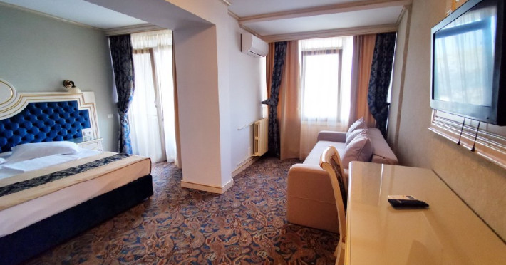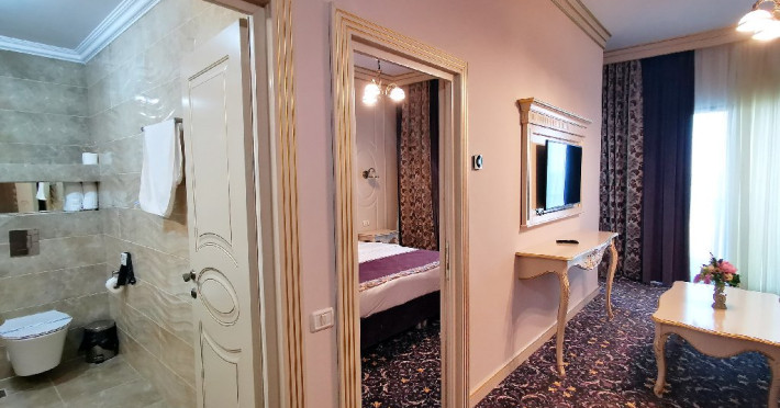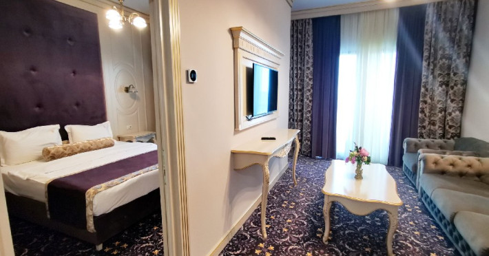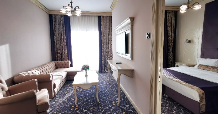 Apartamentele: sunt alcatuite din living cu canapea extensibila, dormitor- cu pat matrimonial, aer conditionat, televizor LCD, minibar, seif, baie cu cada, uscator par, halate si papuci, balcon, internet wi-fi, pardoseala cu mocheta si gresie, geam termopan, plasa de tantari