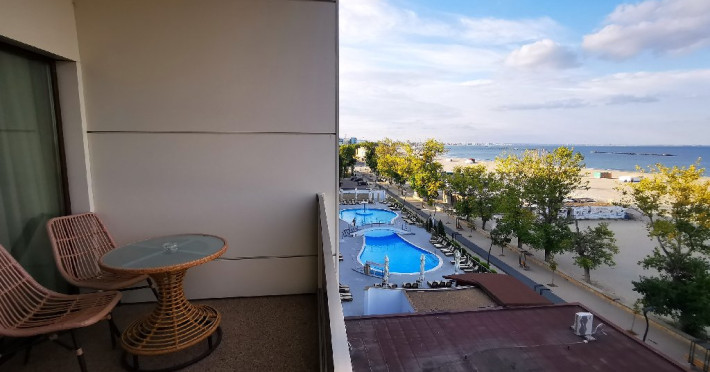 Localizare: Hotel Dacia Sud Mamaia este localizat in partea de sud a statiunii Mamaia, la intrare in statiune dinspre Delfinariu si la cateva minute de mers pe jos de Satul de Vacanta, Aqua Magic si Telegondola, si beneficiaza de o pozitinare deosebita, fiind construit pe malul marii, cu iesire directa la plaja.Descriere: Hotel Dacia Sud Mamaia a fost renovat complet in perioada 2019-2021. Ca si noutate, hotel Dacia Sud Mamaia isi intampina acum oaspetii cu o noua arhitectura plina de eleganta, cu un restaurant, o frumoasa terasa exterioara. Hotelul dispune de lift si a fost extins cu un etaj, toate intr-un decor elegant, in care predomina culorile calde.