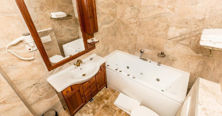 - 2 Camere Duble DELUXE: aceste camere sunt situate la parter si dispun de baie dotata cu jacuzzi.