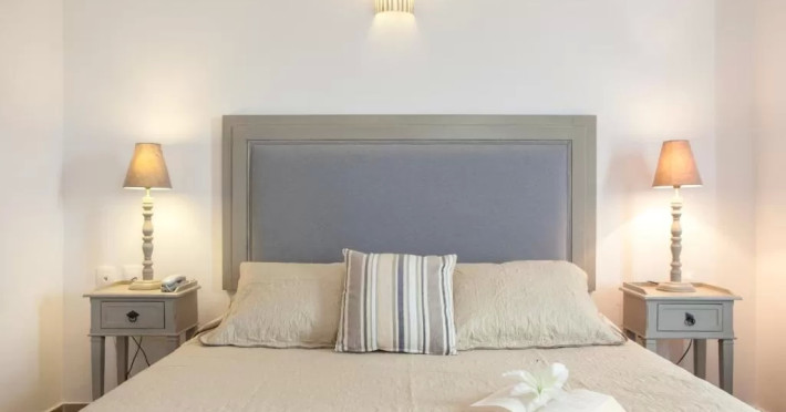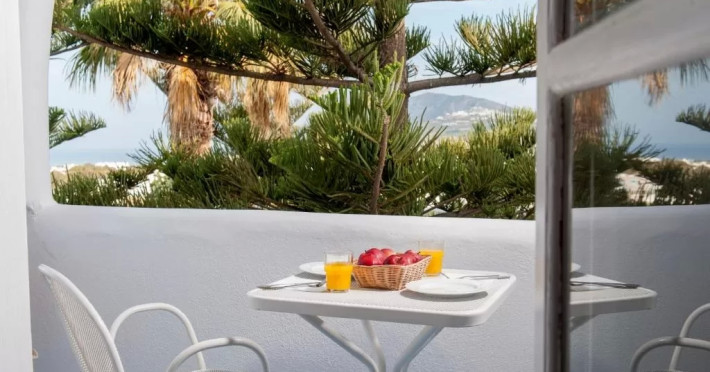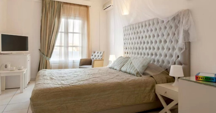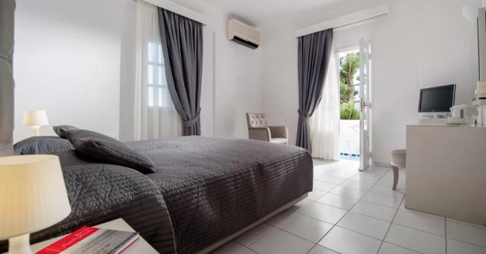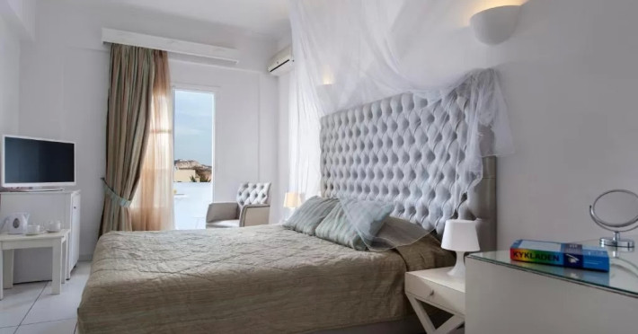 Sunt disponibile 45 camere. Unele camere au balcon cu vedere la mare, unde oaspeții pot admira apusul sau răsăritul soarelui. Oaspeții au la dispoziție serviciul de room service pentru a servi masa sau diverse băuturi. Camerele de la Daedalus Hotel sunt dotate cu aer condiționat, Tv cu canale prin satelit și seif. În camere există baie cu cadă, foehn, articole de toaletă gratuite, precum și halate de baie și papuci. Oaspeții au acces gratuit la serviciul Wi-fi în camere. Fiecare unitate de cazare are frigider.