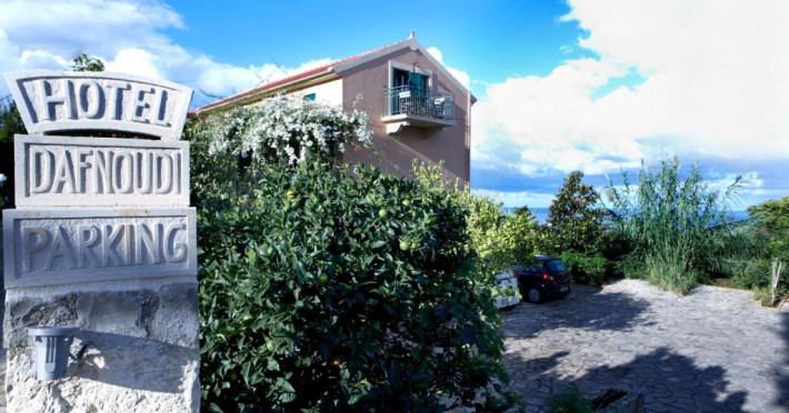 Hotelul Dafnoudi este inconjurat de chiparoși și arbuști de bougainvillea, oferind unități de cazare in sistem self-catering cu aer condiționat și balcon cu vedere la grădină și la Marea Ionică. Pune la dispoziție o zonă cu apă dulce și o zonă pentru copii.