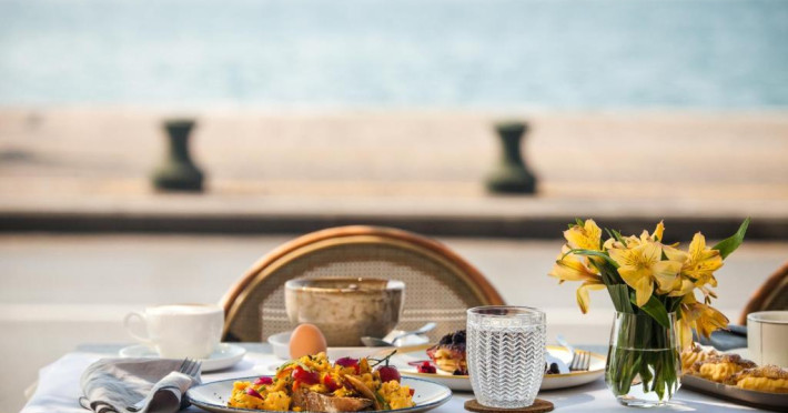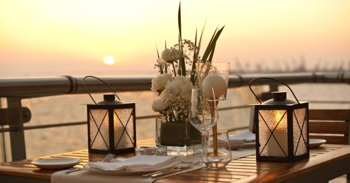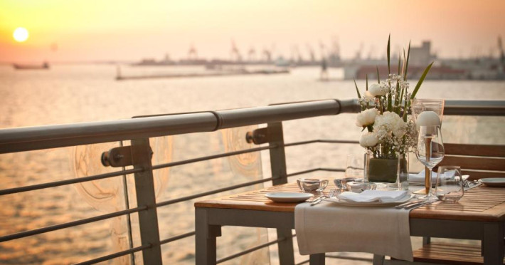 Barul-restaurant Daios are specific mediteranean, fiind apreciat de oaspeti si localnici deopotrivă pentru preparatele sale excelente. Acesta oferă cocktailuri si băuturi, precum si vedere panoramică la mare. Un excelent mic dejun american tip bufet se serveste zilnic la restaurantul Vitrina, de la ora 07:00.