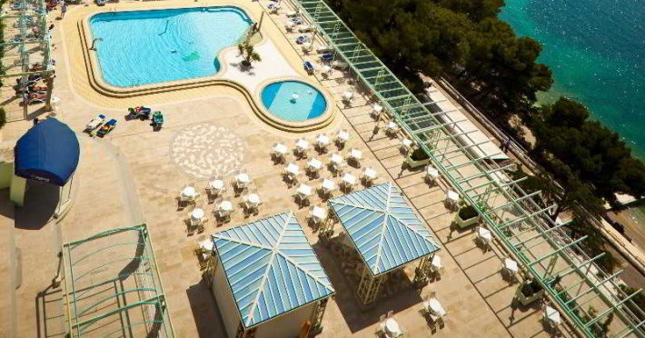 This modern hotel sits in the centre of the Makarska Riviera, the popular tourist destination that stretches for over 60km underneath the Biokovo Mountain. The centre of Makarska with its old town with narrow stone-paved streets, a main church square with a flower and fruit market, and a Franciscan monastery, are just a 10-minute walk away. While the pebbly beach and the palm-fringed promenade, where fashionable cafes, bars and boutiques that overlook the pretty harbour are nestled, is just next to the venue. But its guests should have to walk any further than the terrace of the onsite restaurant, where the delicious meals are perfectly complemented by beautiful sea views and elegant Croatian wines. The pool bar, which serves refreshing drinks throughout the day, offers the needed respite from the heat while one works on the healthy tan on the sun loungers.This modern hotel sits in the centre of the Makarska Riviera, the popular tourist destination that stretches for over 60km underneath the Biokovo Mountain. The centre of Makarska with its old town with narrow stone-paved streets, a main church square with a flower and fruit market, and a Franciscan monastery, are just a 10-minute walk away. While the pebbly beach and the palm-fringed promenade, where fashionable cafes, bars and boutiques that overlook the pretty harbour are nestled, is just next to the venue. But its guests should have to walk any further than the terrace of the onsite restaurant, where the delicious meals are perfectly complemented by beautiful sea views and elegant Croatian wines. The pool bar, which serves refreshing drinks throughout the day, offers the needed respite from the heat while one works on the healthy tan on the sun loungers.