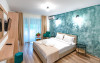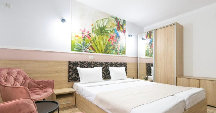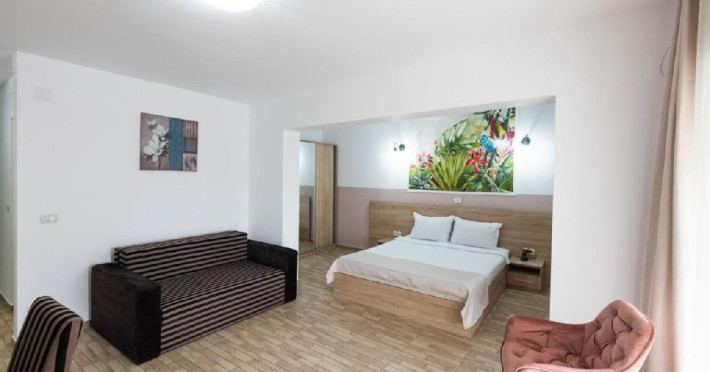 Apartament superior cu pat queen si canapea sunt compuse din living cu canapea extensibila si dormitor cu pat matrimonial, o baie cu cada, uscator de par, AC, TV, internet, seif, minibar.
