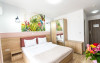 Camera superioara cu pat queen si balcon/ Camera superioara cu 2 paturi single si balcon sunt mai spatioase, avand o suprafata de 24 mp, putand acomoda un pat suplimentar pliant, la cerere. Camera are pat matrimonial, baie cu cada, balcon, uscator de par, AC, seif, TV, Internet.