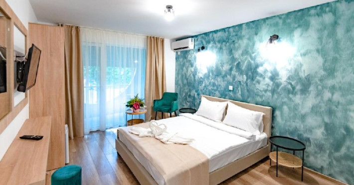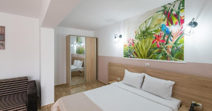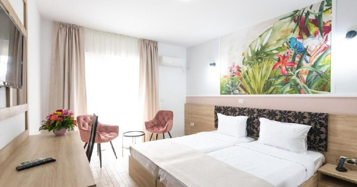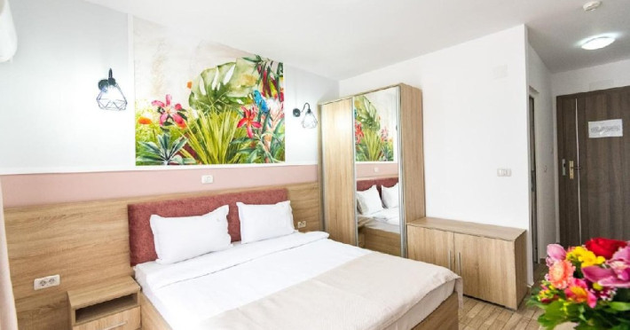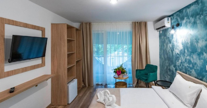 Dana Holiday Club 4*, surprinde inca de la intrare prin spatiile largi, aleile pline de verdeata si arhitectura cu specific mediteranean. Gradina cu o suprafata de peste 11.000 mp ascunde doua pavilioane cu regim de inaltime redus unde se regasesc 150 camere cu balcon, recent modernizate, mobilate si decorate modern. Cele 144 camere duble, 4 camere family si 2 apartamente cu living si dormitor ofera confort ridicat si liniste intr-un ambient prielnic pentru relaxare. Toate camerele sunt dotate cu TV, minibar, aer conditionat, balcon, internet, bai cu cada, uscator de par.