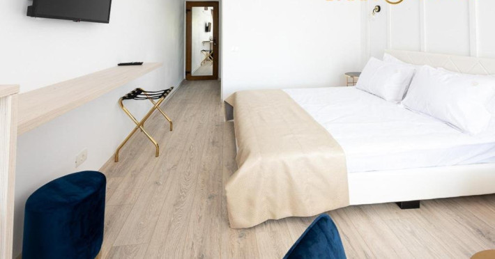 Camere duble 4* cu balcon- MODERNIZATE, au 1 pat matrimonial, AC, TV, frigider; Capacitate maxima 2 adulti + 2 copii (0-12 ani) / 2 adulti + 2 copii (1 copil maxim 5 ani si 1 copil maxim 18 ani).
