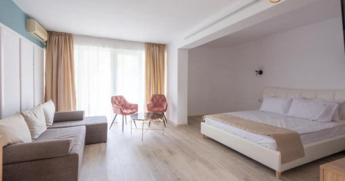 Apartamente 4* - sunt formate din dormitor + living cu canapea extensibila. Atat in dormitor cat si in living exista TV, iar in living exista AC si frigider si balcon. In living exista posibilitate adaugarii unui pat suplimentar cotra cost. Capacitate maxima: 4 adulti + 1 copil ( <18 ani).