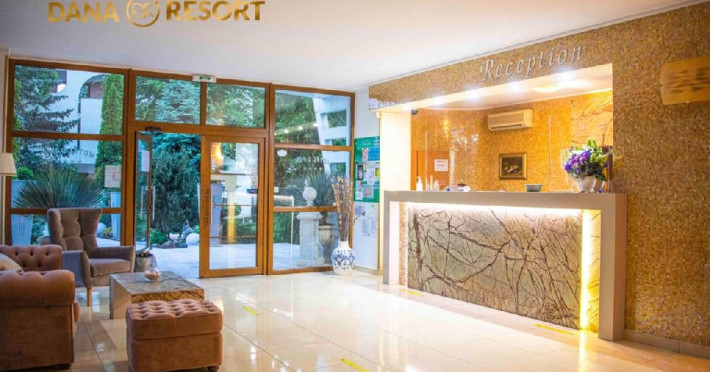 Hotel Dana 4 stele este situat la 500 de metri de plaja si are o arhitectura diferita fata de restul unitatilor de cazare din zona, fiind alcatuit dintr-un corp principal si mai multe vile cu aspect mediteranean . Hotelul este inconjurat de o gradina botanica cu suprafata de 15000 mp, in care coexista peste 200 de specii diferite de plante.