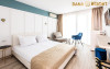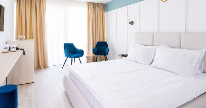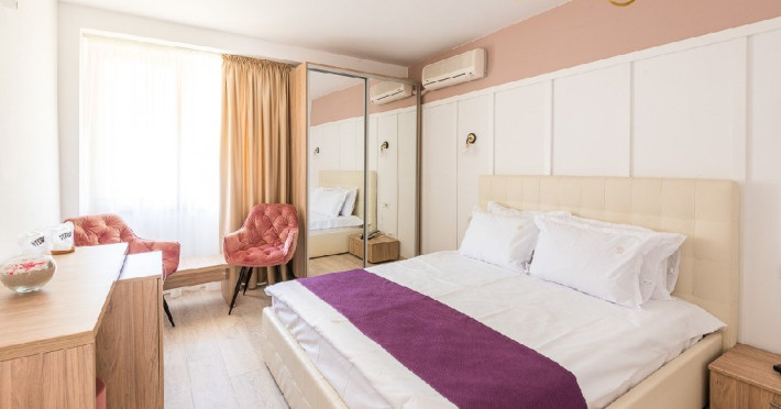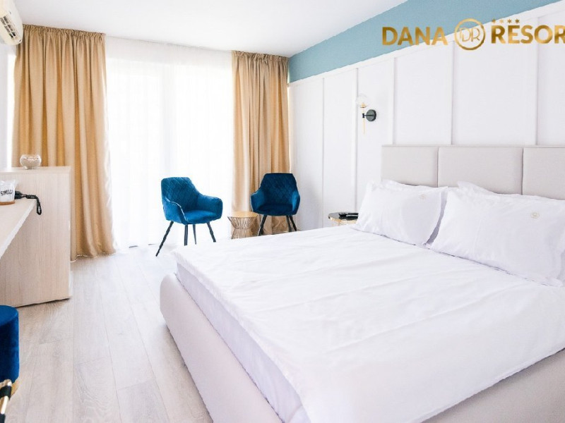 Hotel Dana 4 stele este situat la 500 de metri de plaja si are o arhitectura diferita fata de restul unitatilor de cazare din zona, fiind alcatuit dintr-un corp principal si mai multe vile cu aspect mediteranean . Hotelul este inconjurat de o gradina botanica cu suprafata de 15000 mp, in care coexista peste 200 de specii diferite de plante. Va informam ca incepand cu sezonul 2021 se va incasa la check-in taxa de statiune, in valoare de 5 lei/persoana/zi, conform HCL 283/23.12.2020. Vor fi taxate toate persoanele cu varsta de 18 ani impliniti. Dotari si servicii Hotel Dana dispune de camere duble de 3***, camere duble de 4**** si apartamente, distribuite atat in corpul central, cat si in vile. Camerele si apartamentele au fost modernizate si reamenajate in 2021 si sunt dotate cu mobilier nou, aer conditionat, minibar, seif si televizor. Restaurantul Hotelului Dana are o terasa cu gradina si serveste specialitati romanesti. Complexul Dana mai dispune de piscina descoperita cu acces gratuit si locuri de joaca pentru copii. Piscina este locul preferat de turistii care cauta locul perfect de relaxare in vacanta. Chiar daca plaja atrage turistii ca un magnet inca de la primele raze de soare, mirosul marii impletit cu cel al plantelor din resort fac ca o mare parte dintre acestia sa prefere sezlongurile de la piscina si umbra brazilor din apropiere. Terasa in aer liber este locul preferat pentru servirea mesei inca de la primele ore ale diminetii, la micul dejun, si terminand cu cinele tarzii in compania muzicii bune si veseliei specifice vacantelor la mare. Restaurantul cu specific international, pizzeria italiana si barul se imbina perfect in peisajul resortului, conducand turistii pe trasee gastronomice interesante. WiFi ul acopera intregul resort fiind un companion perfect turistului modern. Familiile cu copii se pot bucura de spatiile verzi generoase in care cei mici poti sa-si consume in siguranta energia, locurile de joaca pentru diferite grupe de varsta si piscina speciala dedicata celor mai mici dintre turisti fiind locurile preferate de acestia pentru distractia in aer liber. Pozitia excelenta a resortului, aflat in inima statiunii Venus, face ca plimbarile de seara prin statiune sau pe plaja sa fie gustate din plin de turistii dornici de distractie. De ce Dana Resort este locul perfect de cazare in sezonul 2022 e Conditiile actuale de distantare sociala obliga majoritatea hotelurilor sa impuna o multime de constrangeri pentru asigurarea respectarii masurilor impuse de autoritati. Dana Resort reuseste prin structura sa indeplineasca toate aceste conditii fara a impune restrictii majore turistilor aflati in vacanta.Structura complexului este parter si un etaj, toate intrarile in camere fiind din exterior, eliminand astfel contactul dintre turisti in spatiile comune inchise (holuri, lifturi). Terasa in aer liber este locul perfect pentru savurarea preparatelor pregatite de chefii Dana Resort. Suprafetele generoase asigura spatiul necesar unei distantari relaxate astfel incat vacanta la mare sa fie una plina de momente frumoase. Dana Resort in cifre si nu numai: a? 15.000 mp de gradina luxurianta a? 112 unitati de cazare (camere duble, camere family, camere duplex, apartamente) a? Parter cu 1 etaj - regim maxim de inaltime a? 1 restaurant a la carte a? 1 pizzerie a? 2 baruri a? 1 piscina pentru adulti a? 1 piscina pentru copii a? 1 loc de joaca pentru copii a? Camere modernizate in 2021 - parchet nou, mobila noua, televizoare noi a? Toate camerele dispun de aer conditionat, minibar, casete de valori Parcare contra-cost in limita locurilor disponibile -> 15 lei/ zi Servicii masa MASA: restaurant propriu mediteranean; Mic dejun - bufet suedez Pranz si cina - in sistem a la carte ( bon valoric) PACHETELE CU DEMIPENSIUNE SI PENSIUNE COMPLETA NU INCLUD MASA PENTRU COPIII CU VARSTA INTRE 0 - 4.99 ANI, ACESTEA INCLUZAND DOAR MICUL DEJUN. Dotari camere Camerele de 3* au intre 16 si 19 mp, iar la cele de 4* suprafata variaza intre 23 si 28 mp. Toate spatiile de cazare sunt dotate cu: LCD, telefon, aer conditionat, minibar, seif, uscator de par, acces la internet. Camerele sunt situate atat in corpul principal, cat si in cele 4 vile din cadrul resortului. Acestea sunt dispuse astfel: Camere in hotel: hotelul are doar 5 camere la etajul 2, restul de 79 camere sunt situate la parter sau etajul 1 Camere duble 4* cu balcon- MODERNIZATE, au 1 pat matrimonial, AC, TV, frigider; Capacitate maxima 2 adulti + 2 copii (0-12 ani) / 2 adulti + 2 copii (1 copil maxim 5 ani si 1 copil maxim 18 ani). Camere duble 4* fara balcon- MODERNIZATE, au 1 pat matrimonial, AC, TV, frigider; Capacitate maxima 2 adulti + 2 copii (0-12 ani) / 2 adulti + 2 copii (1 copil maxim 5 ani si 1 copil maxim 18 ani). Camere family cu balcon - MODERNIZATE, au 1 pat matrimonial + 1 canapea extensibila, AC in living, TV, frigider; Capacitate maxima: 2 adulti + 2 copii (0-18 ani)/ 3 adulti + 1 copil (0-5 ani) Camere family fara balcon- MODERNIZATE, au 1 pat matrimonial + 1 canapea extensibila si ofera posibilitatea de a usca prosoapele si costumele de baie in exterior, AC in living, TV, frigider; Capacitate maxima: 2 adulti + 2 copii (0-18 ani)/ 3 adulti + 1 copil (0-5 ani). Camere in vile: parter + 1 etajul 1. Toate unitatile de cazare, din vile, au balcon sau terasa! Apartamente 4* - sunt formate din dormitor + living cu canapea extensibila. Atat in dormitor cat si in living exista TV, iar in living exista AC si frigider si balcon. In living exista posibilitate adaugarii unui pat suplimentar cotra cost. Capacitate maxima: 4 adulti + 1 copil (Datorita dinamicitatii domeniului disponibilitatea ofertelor se modifica de la un moment la altul. De aceea ofertele sunt valabile in limita locurilor disponibile. Agentia nu este responsabila pentru eventualele neconcordante care pot aparea intre informatiile privind tarifele si alte detalii din site si informatiile primite in agentie. In aceste cazuri vor avea prioritate, intotdeauna, informatiile