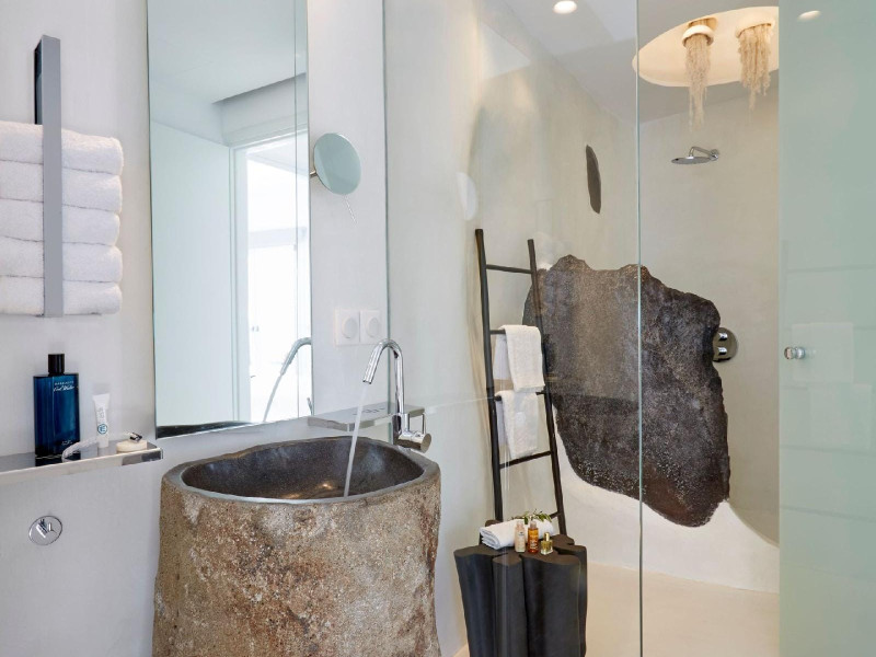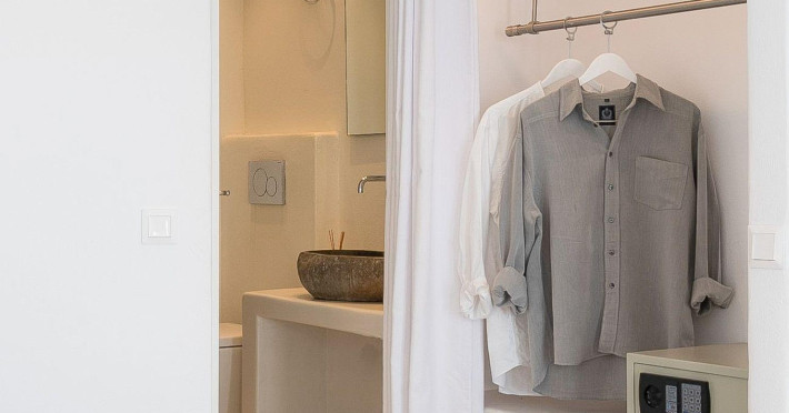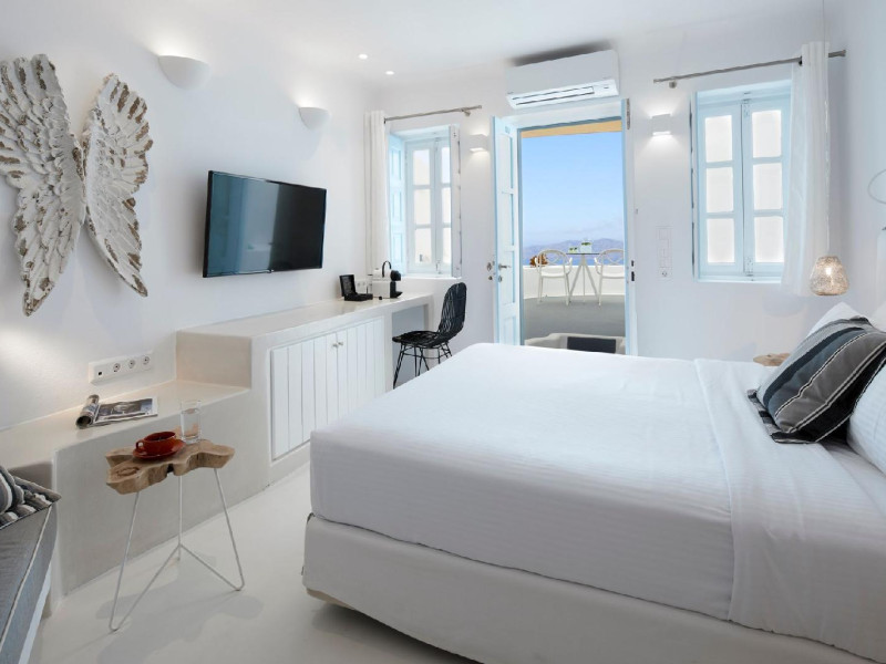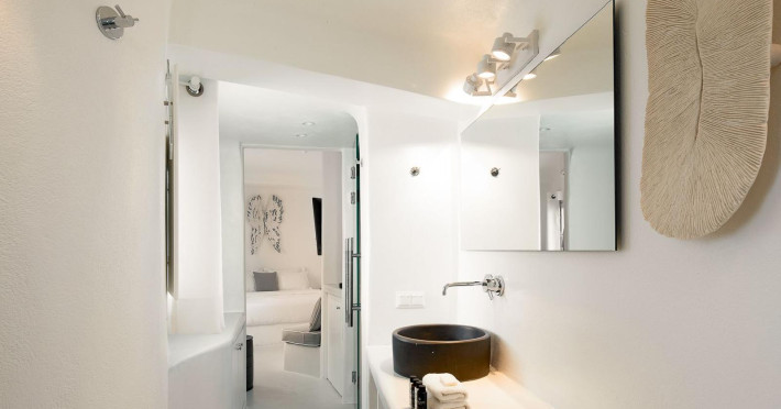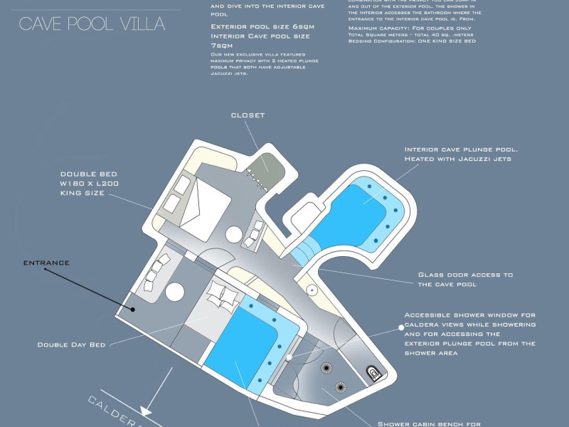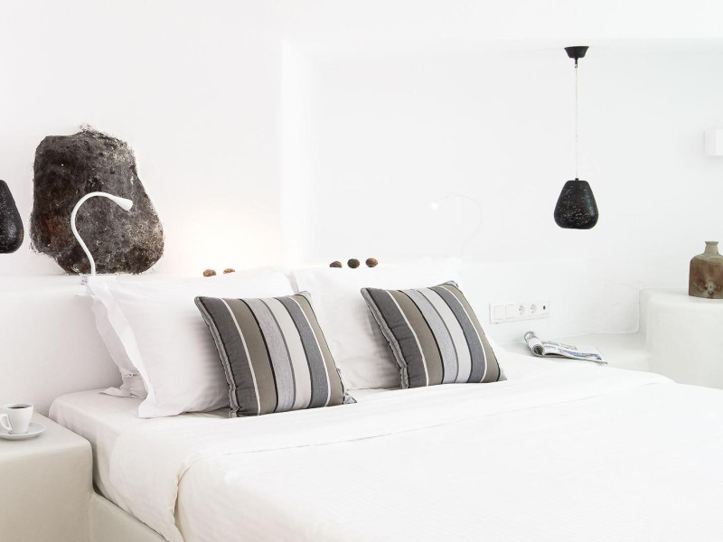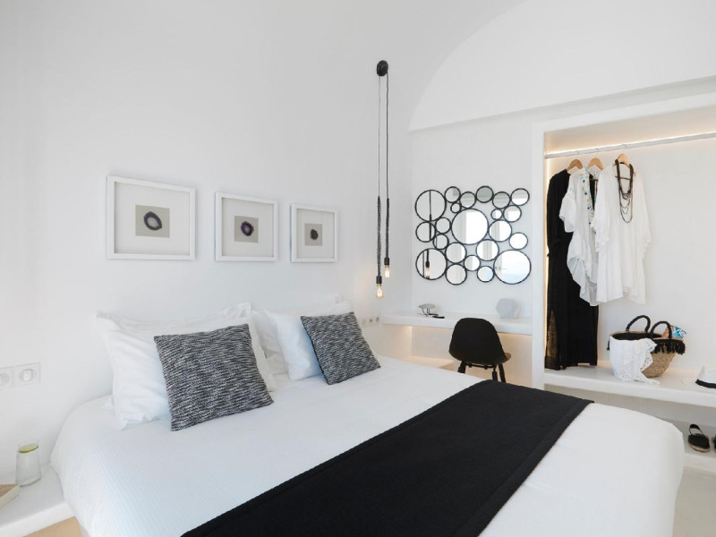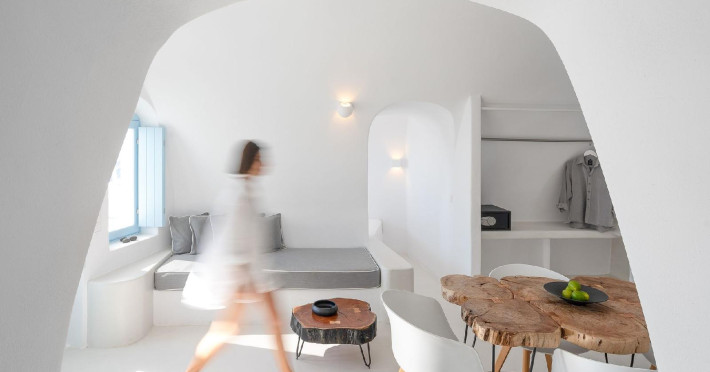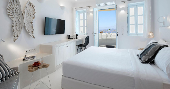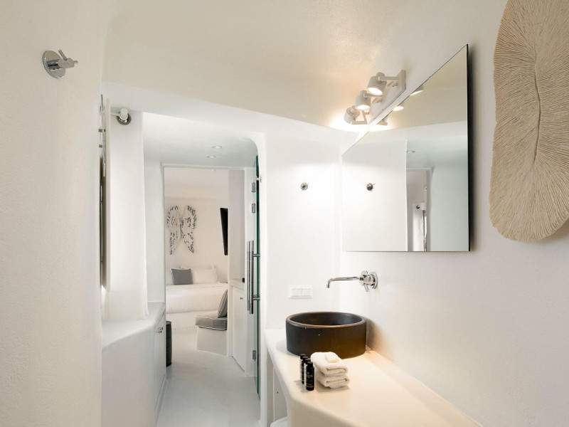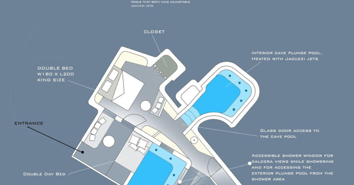 The Santorini villa Etheras derives her name from the Greek word for the fifth element, the so called quintessence. Etheras, along with fire, air, water, and earth, is the mystical element from which the world was made. Thus, the ancient Greeks attributed Etheras ideal qualities, like a worldly presented element derived from the home of the Gods. The villa Etheras true to her name, compiles key aesthetic principles such as a spacious living room, two bedrooms with ensuite bathrooms, and a fully-equipped kitchen while it can host up to four guests. Villa Etheras hangs imposingly from the rocks where its exterior spreads over 130 sq.m. The villa's private surrounding patio offers plenty of luxurious touches like a private infinity swimming pool, outdoor dining area, pool and off-pool loungers , all complementing the perfect relaxation canvas. Enjoy the warmth of Santorini's sun as you admire the breathtaking panoramic views of the caldera. The outdoor area of Villa Etheras is an extension of the rock and combine endless views with privacy.The Santorini villa Etheras derives her name from the Greek word for the fifth element, the so called quintessence. Etheras, along with fire, air, water, and earth, is the mystical element from which the world was made. Thus, the ancient Greeks attributed Etheras ideal qualities, like a worldly presented element derived from the home of the Gods. The villa Etheras true to her name, compiles key aesthetic principles such as a spacious living room, two bedrooms with ensuite bathrooms, and a fully-equipped kitchen while it can host up to four guests. Villa Etheras hangs imposingly from the rocks where its exterior spreads over 130 sq.m. The villa's private surrounding patio offers plenty of luxurious touches like a private infinity swimming pool, outdoor dining area, pool and off-pool loungers , all complementing the perfect relaxation canvas. Enjoy the warmth of Santorini's sun as you admire the breathtaking panoramic views of the caldera. The outdoor area of Villa Etheras is an extension of the rock and combine endless views with privacy.