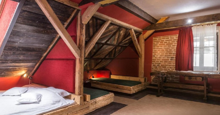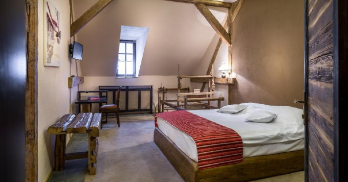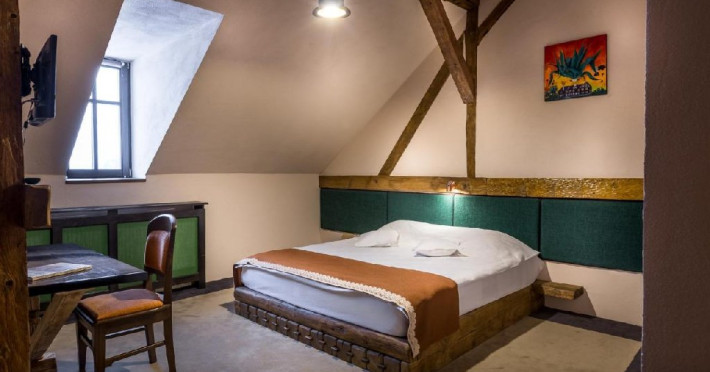 Fiecare camera dispune de o suprafata generoasa si este decorata pastrand stilul medieval. Toate camerele dispun de TV cu ecran plat si canale prin cablu, baie proprie cu cada eleganta, articole de toaleta si papuci.