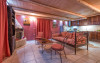 Parter: living cu semineu si 2 paturi twin si canapea extensibila, bucatarie si baie.
