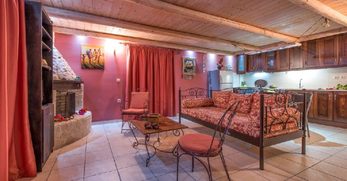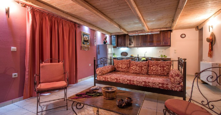 - Stone Apartment - parter (42 m2): dormitor cu pat matrimonial si living cu 1 pat twin si canapea extensibila.