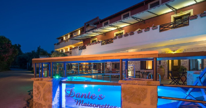 Locatie: Dantes Mezonete se afla in paradisul numit Zakynthos, intr-o gradina de maslini, la doar 50 m distanta de plaja nisipoasa a zonei Psarou ce se afla intre statiunile Alykes si Tsilivi.Un total de 10 camere impartite in: