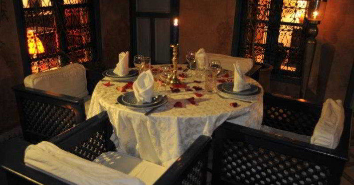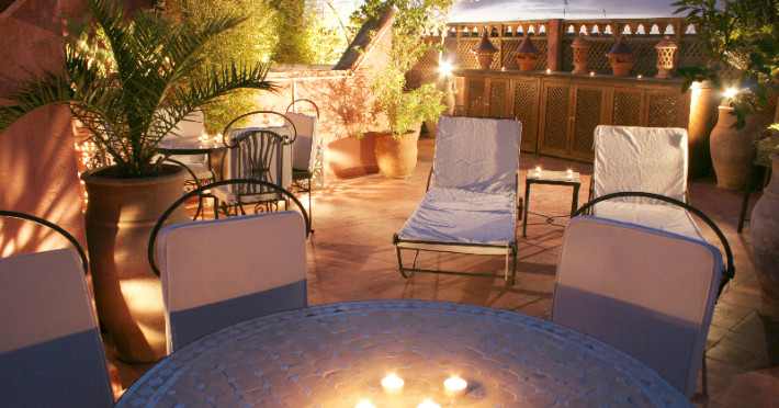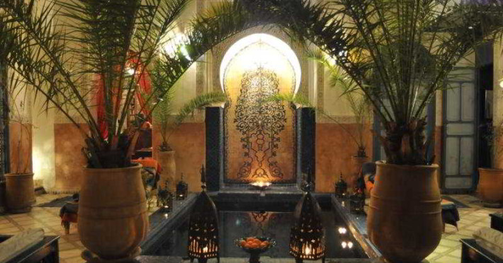 Situated in Assouel, one of the oldest districts of the medina, the riad is within 5 minutes on foot from the post office Bab El-Khemis, near a car park watched by a guard and close to the Ben Youssef Madrasa and close to the small museum created by Omar Ben Jelloun. The bus station is around 100 m from the riad and the railway station is some 800 m away.||The riad consists of three big rooms and two superior suites, each of them different and personalised. It is inspired in decoration by the city which carries its name. The riad offers a lounge bar to take a mint tea and taste the Moroccan sweet petits fours. Under the Berber tent on the terrace is the ideal place to take in a magnificent view of the medina of Marrakesh and the Atlas Mountains. Renovated in 2010, the air-conditioned establishment welcomes guests in a lobby with 24-hour reception and check-out service. The property also offers a hotel safe, TV lounge, café, breakfast room, room and laundry services and bicycle hire.||The rooms and suites are equipped with air conditioning (individually regulated) and heating. Suites Fes and Essaouira are equipped with fireplaces and the atmospheres are created in the style of Dar El Beida with Art Deco furniture, the Berber style of Zagora and the colours of the Red City, Marrakech. The en suite bathrooms in the rooms are fitted with a shower and hairdryer. All accommodation features a double bed and Internet access.||The riad offers guests an indoor swimming pool and childrens swimming area, a sun terrace and massage and spa treatments for a relaxing stay. Guests can find a golf course about 700 m from the riad.||The meals are served either inside in the Western dining room, the Moroccan lounge, outside at the edge of the pond or on the terrace. Products are fresh, bought every day on the market. The breakfasts are served each morning. Lunch and dinner are offered à la carte.Situated in Assouel, one of the oldest districts of the medina, the riad is within 5 minutes on foot from the post office Bab El-Khemis, near a car park watched by a guard and close to the Ben Youssef Madrasa and close to the small museum created by Omar Ben Jelloun. The bus station is around 100 m from the riad and the railway station is some 800 m away.||The riad consists of three big rooms and two superior suites, each of them different and personalised. It is inspired in decoration by the city which carries its name. The riad offers a lounge bar to take a mint tea and taste the Moroccan sweet petits fours. Under the Berber tent on the terrace is the ideal place to take in a magnificent view of the medina of Marrakesh and the Atlas Mountains. Renovated in 2010, the air-conditioned establishment welcomes guests in a lobby with 24-hour reception and check-out service. The property also offers a hotel safe, TV lounge, café, breakfast room, room and laundry services and bicycle hire.||The rooms and suites are equipped with air conditioning (individually regulated) and heating. Suites Fes and Essaouira are equipped with fireplaces and the atmospheres are created in the style of Dar El Beida with Art Deco furniture, the Berber style of Zagora and the colours of the Red City, Marrakech. The en suite bathrooms in the rooms are fitted with a shower and hairdryer. All accommodation features a double bed and Internet access.||The riad offers guests an indoor swimming pool and childrens swimming area, a sun terrace and massage and spa treatments for a relaxing stay. Guests can find a golf course about 700 m from the riad.||The meals are served either inside in the Western dining room, the Moroccan lounge, outside at the edge of the pond or on the terrace. Products are fresh, bought every day on the market. The breakfasts are served each morning. Lunch and dinner are offered à la carte.