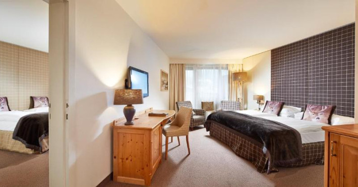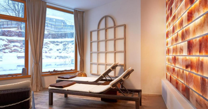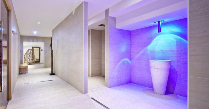 Zona de spa este amplasată pe două niveluri și include mai multe saune, o sală de fitness modernă, cameră de relaxare cu paturi de apă, precum și un centru de infrumusețare. Terasa la soare are vedere frumoasă la munții din jur.