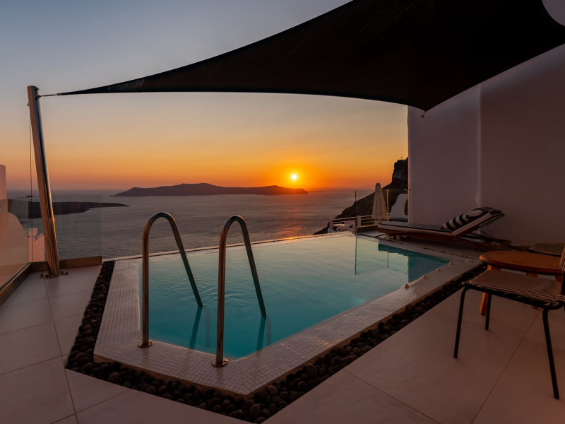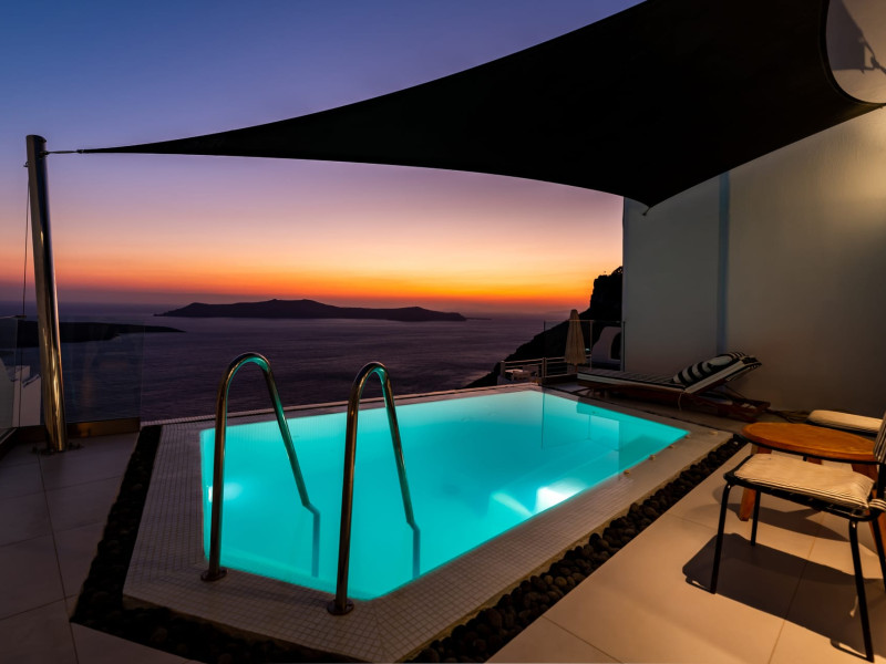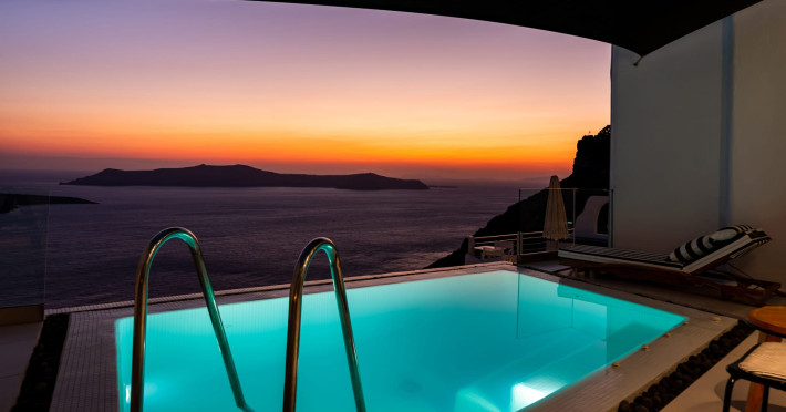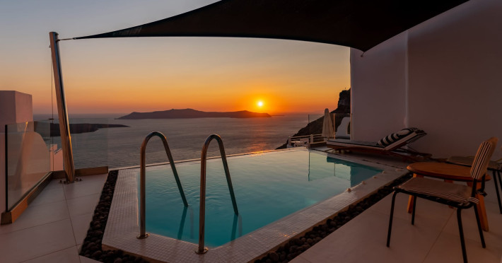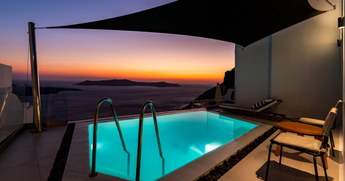 Inspired by the black volcanic nature and infused with traditional Cycladic architecture, the Day Dream Luxury Suites are the perfect combination of minimal design, true style and pure luxury.Pamper yourself in one of its infinity pools or Jacuzzis and gaze at the horizon where the sky meets the sea and together they compliment the views of the rough cliffs and the volcano that stands imposingly in the center. Take pleasure in a majestic sunset while having a unique and unforgettable experience.Inspired by the black volcanic nature and infused with traditional Cycladic architecture, the Day Dream Luxury Suites are the perfect combination of minimal design, true style and pure luxury.Pamper yourself in one of its infinity pools or Jacuzzis and gaze at the horizon where the sky meets the sea and together they compliment the views of the rough cliffs and the volcano that stands imposingly in the center. Take pleasure in a majestic sunset while having a unique and unforgettable experience.
