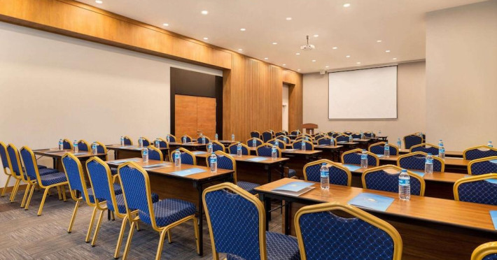 Facilities: The hotel was modernised in 2024. The hotel has a lift and features 174 rooms. English-speaking staff at the reception desk in the lobby are happy to answer any questions. A baggage storage service and a safe are available. Wireless internet access (no extra charge) allows guests to stay connected while on holiday. The tour desk offers assistance with booking excursions. The hotel has a range of facilities for guests with disabilities. The hotel has wheelchair-accessible facilities. A garden provides extra space for rest and relaxation in the open air. Guests arriving by car can park their vehicles in the garage (no extra charge) or in the car park (no extra charge). Other services include a 24-hour security service, a car hire service, a transfer service, room service, an alarm call service and a laundry service. A business centre with fax machine, projector and a flip chart and pens is available.Optional fees: Fee for buffet breakfast: approximately EUR 15 for adults and EUR 10 for children Airport shuttle fee: EUR 65 per vehicle (one-way, maximum occupancy 5) The above list may not be comprehensive. Fees and deposits may not include tax and are subject to change. . Policies: The seasonal pool will be open from May to September. Reservations are required for massage services. Reservations can be made by contacting the hotel prior to arrival, using the contact information on the booking confirmation. No pets and no service animals are allowed at this property. Contactless check-in and contactless check-out are available. . Instructions: Extra-person charges may apply and vary depending on property policy Government-issued photo identification and a credit card, debit card, or cash deposit may be required at check-in for incidental charges Special requests are subject to availability upon check-in and may incur additional charges; special requests cannot be guaranteed This property accepts credit cards, debit cards, and cash This property has outdoor spaces, such as balconies, patios, terraces which may not be suitable for children; if you have concerns, we recommend contacting the property prior to your arrival to confirm they can accommodate you in a suitable room This property affirms that it follows the cleaning and disinfection practices of Count on Us (Wyndham) . Special instructions: This property offers transfers from the airport (surcharges may apply). Guests must contact the property with arrival details before travel, using the contact information on the booking confirmation. Front desk staff will greet guests on arrival at the property.. Minimum age: 18. Check in from: 2:00 PM. Check in to: anytime. . Check out: 12:00 PM.Facilities: The hotel was modernised in 2024. The hotel has a lift and features 174 rooms. English-speaking staff at the reception desk in the lobby are happy to answer any questions. A baggage storage service and a safe are available. Wireless internet access (no extra charge) allows guests to stay connected while on holiday. The tour desk offers assistance with booking excursions. The hotel has a range of facilities for guests with disabilities. The hotel has wheelchair-accessible facilities. A garden provides extra space for rest and relaxation in the open air. Guests arriving by car can park their vehicles in the garage (no extra charge) or in the car park (no extra charge). Other services include a 24-hour security service, a car hire service, a transfer service, room service, an alarm call service and a laundry service. A business centre with fax machine, projector and a flip chart and pens is available.Optional fees: Fee for buffet breakfast: approximately EUR 15 for adults and EUR 10 for children Airport shuttle fee: EUR 65 per vehicle (one-way, maximum occupancy 5) The above list may not be comprehensive. Fees and deposits may not include tax and are subject to change. . Policies: The seasonal pool will be open from May to September. Reservations are required for massage services. Reservations can be made by contacting the hotel prior to arrival, using the contact information on the booking confirmation. No pets and no service animals are allowed at this property. Contactless check-in and contactless check-out are available. . Instructions: Extra-person charges may apply and vary depending on property policy Government-issued photo identification and a credit card, debit card, or cash deposit may be required at check-in for incidental charges Special requests are subject to availability upon check-in and may incur additional charges; special requests cannot be guaranteed This property accepts credit cards, debit cards, and cash This property has outdoor spaces, such as balconies, patios, terraces which may not be suitable for children; if you have concerns, we recommend contacting the property prior to your arrival to confirm they can accommodate you in a suitable room This property affirms that it follows the cleaning and disinfection practices of Count on Us (Wyndham) . Special instructions: This property offers transfers from the airport (surcharges may apply). Guests must contact the property with arrival details before travel, using the contact information on the booking confirmation. Front desk staff will greet guests on arrival at the property.. Minimum age: 18. Check in from: 2:00 PM. Check in to: anytime. . Check out: 12:00 PM.