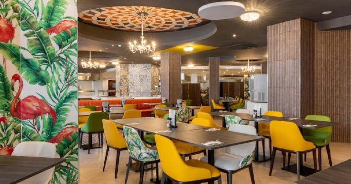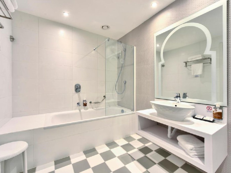 Facilitati: hotelul dispune de 7 restaurante tematice, 4 piscine in aer liber si interioare, 2 baruri, centru Spa, salon de coafura, sala de conferinta, loc de joaca pentru copii, zona de plaja privata, WiFi.