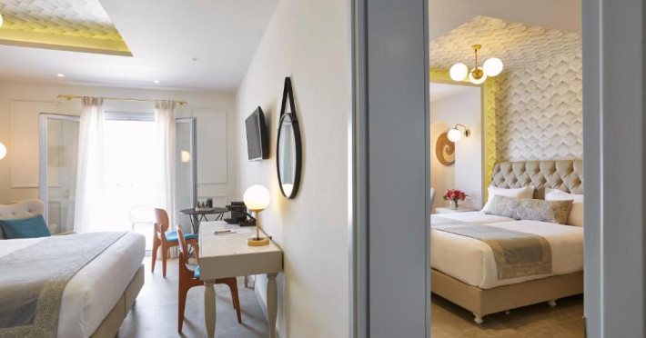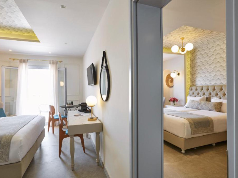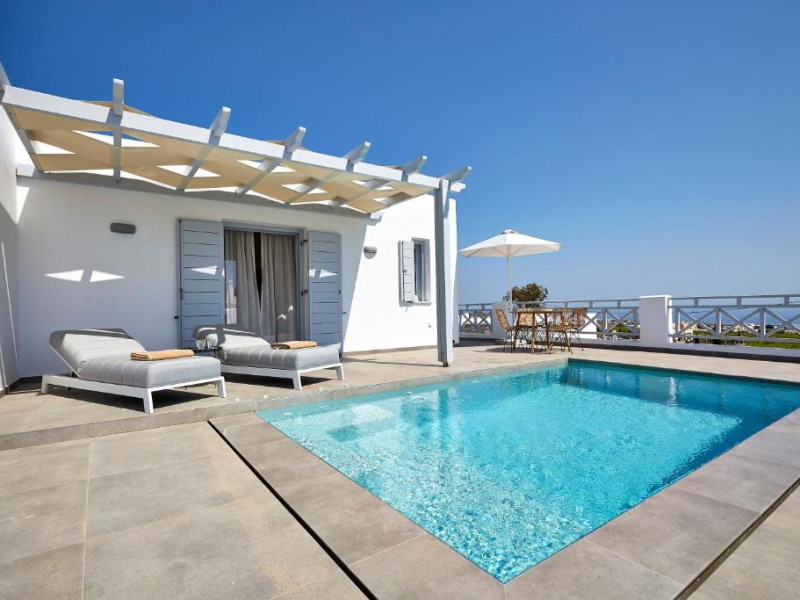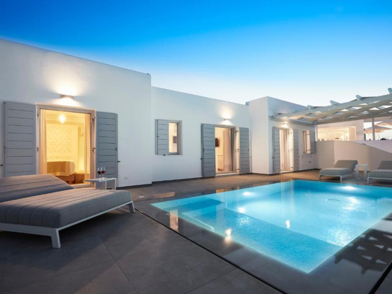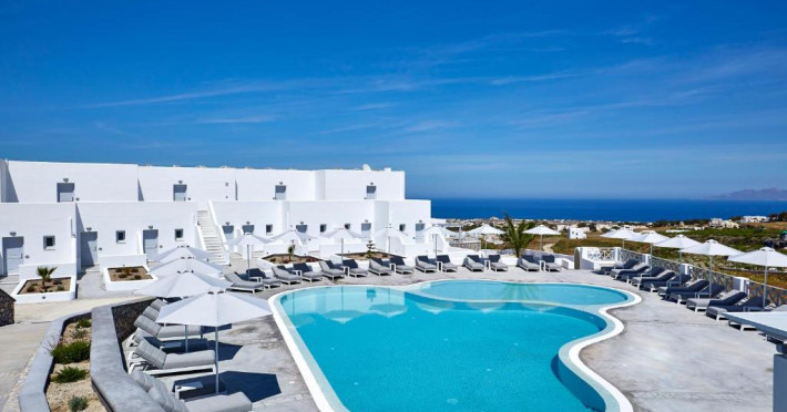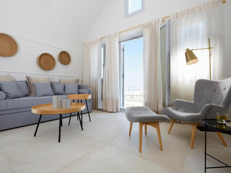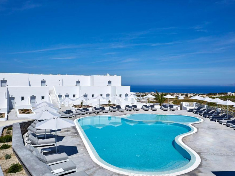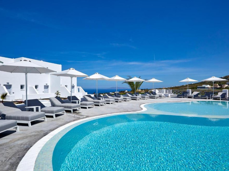 Portul se află la 8 km, iar Aeroportul Santorini este la 5 km. Oaspeții beneficiază de transfer gratuit către și dinspre oraș.